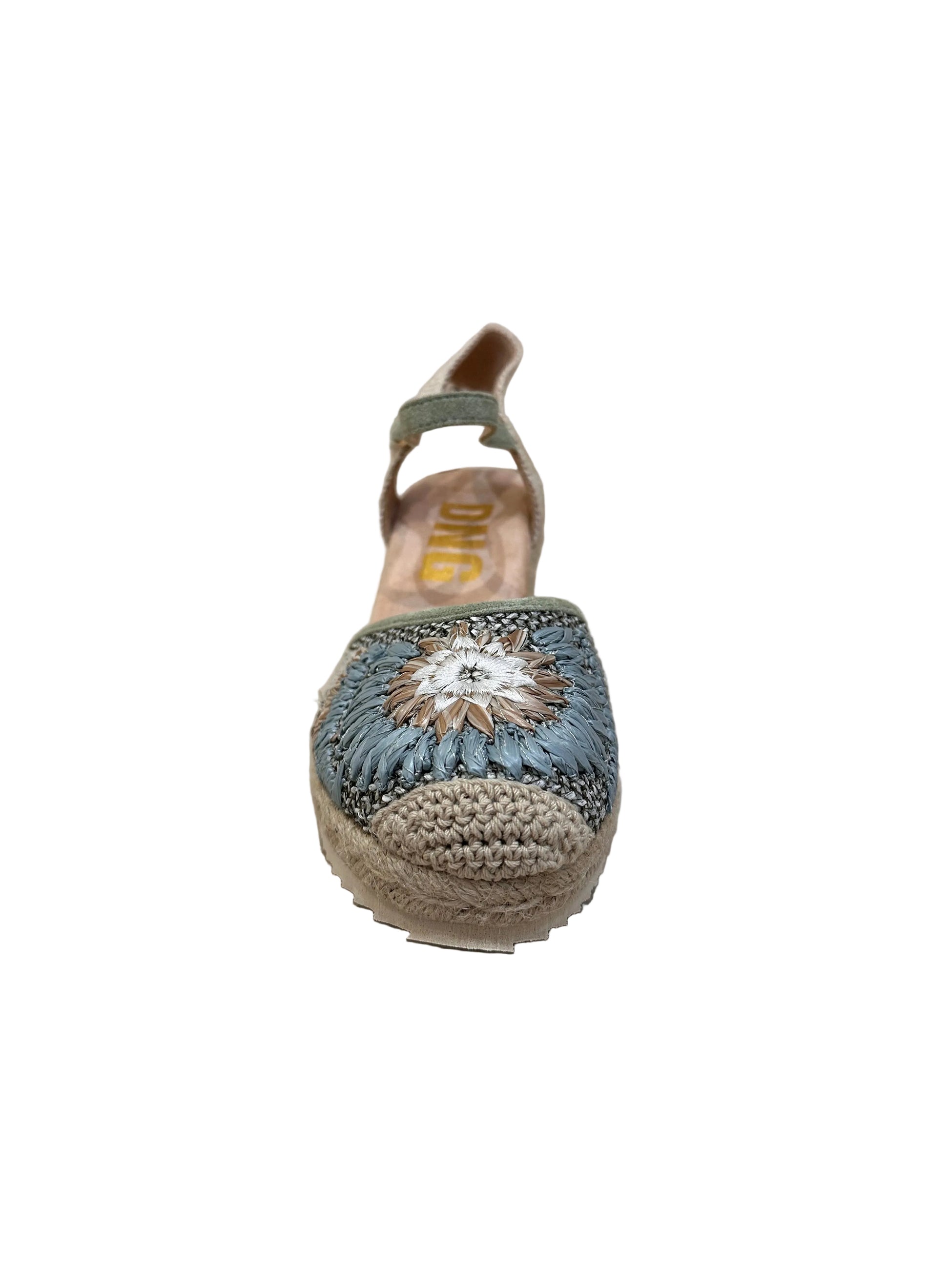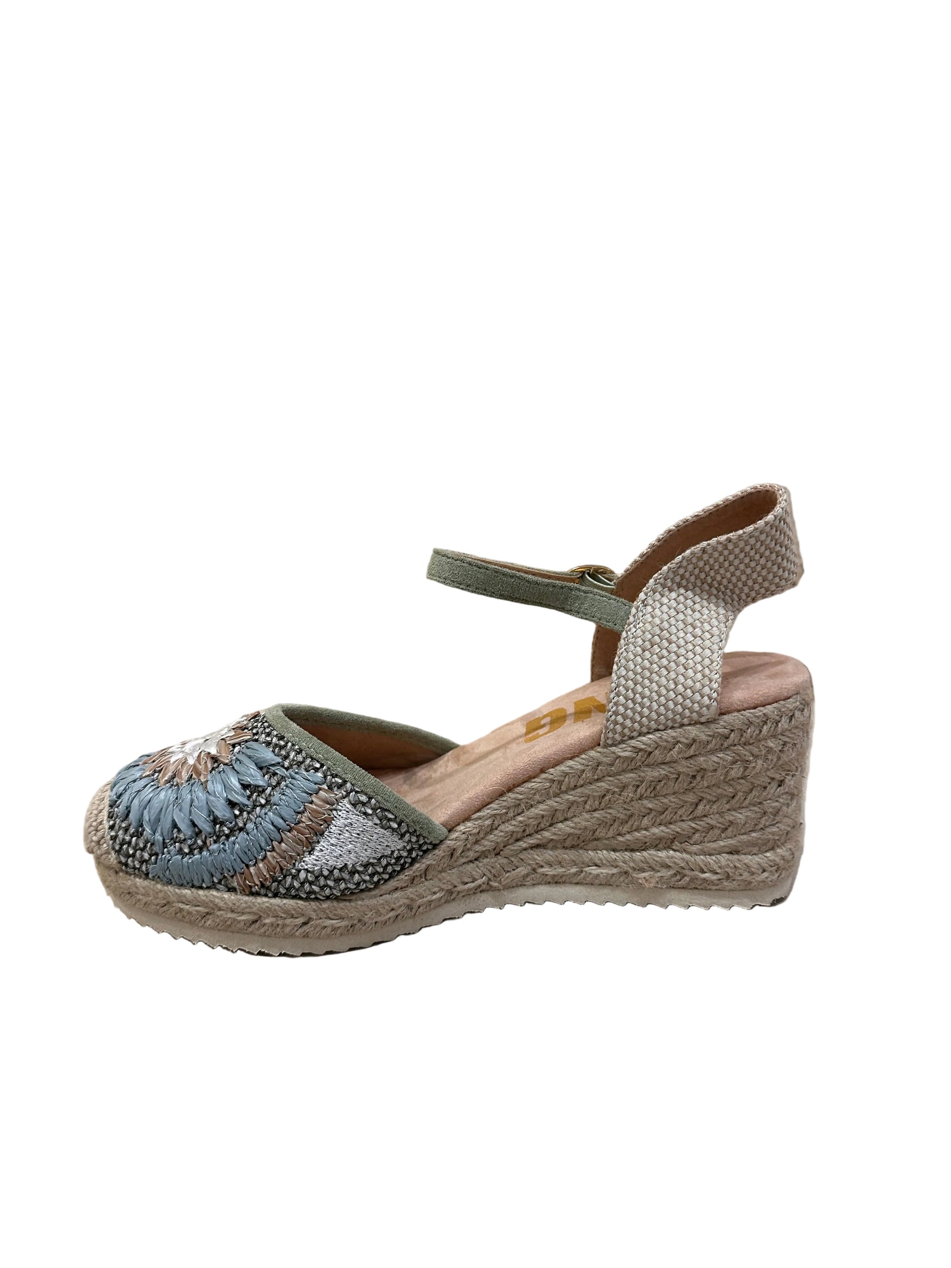 Aparlgata de cuña con dibujo de flor en tonos verdes